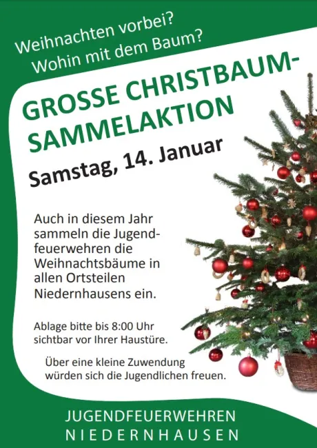 Am kommenden Samstag den 14. Januar 2023 findet gemeindeweit die Weihnachtsbaum-Sammelaktion statt.